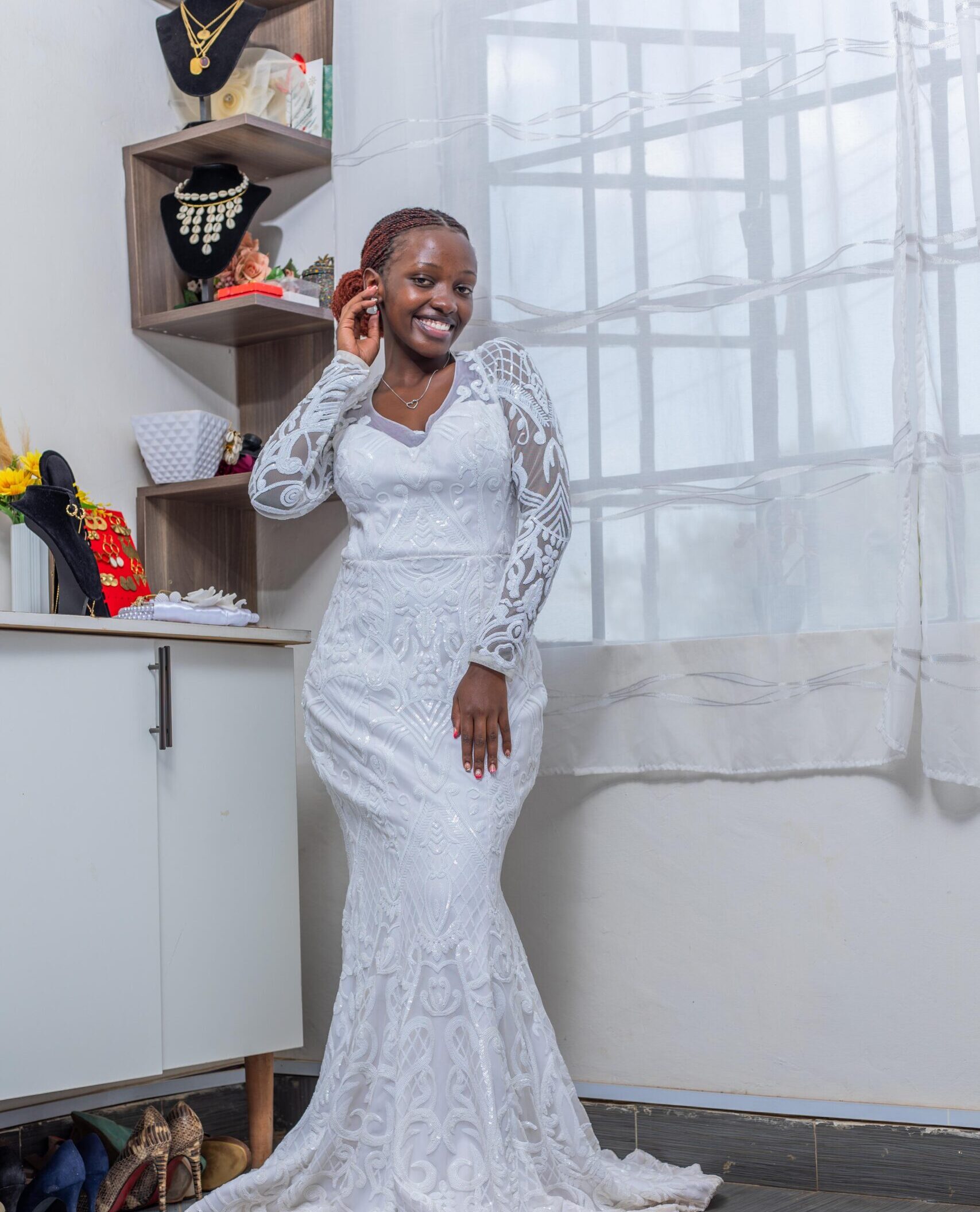 Mermaid wedding dress with sleeves. Lace detailed with sequins