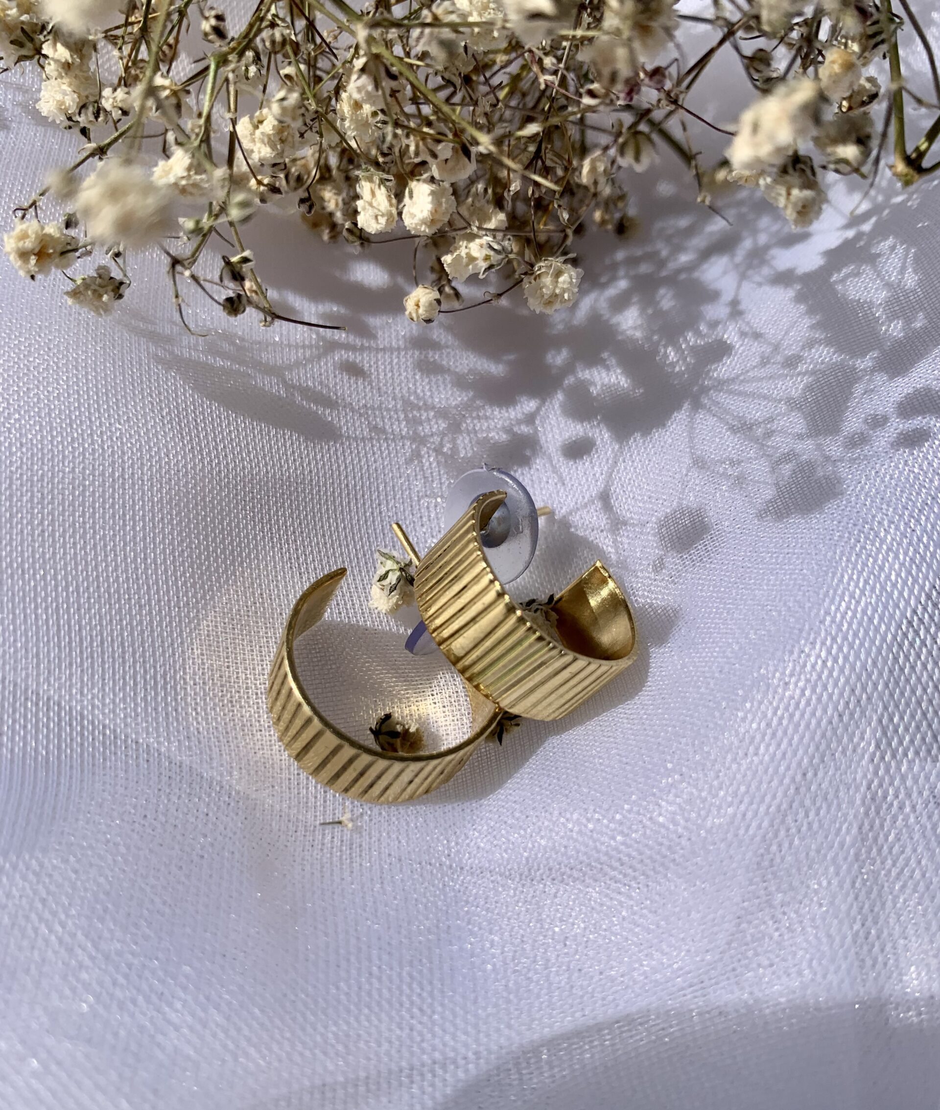 Home Jewelry Brass Earrings Kenga Ribbed Studs