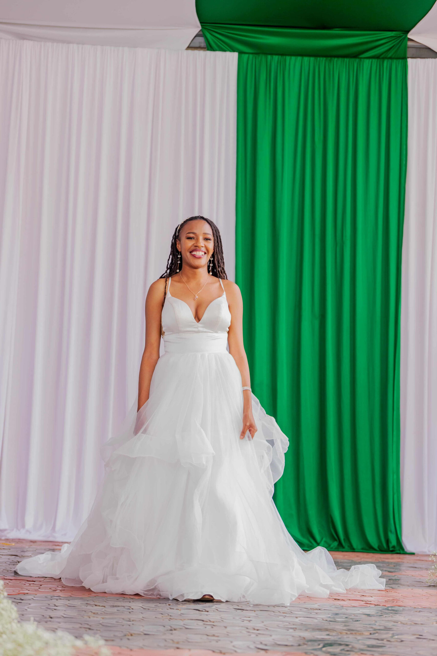 Layered with deep v back, tulle bottom, satin top with sheer on the sides