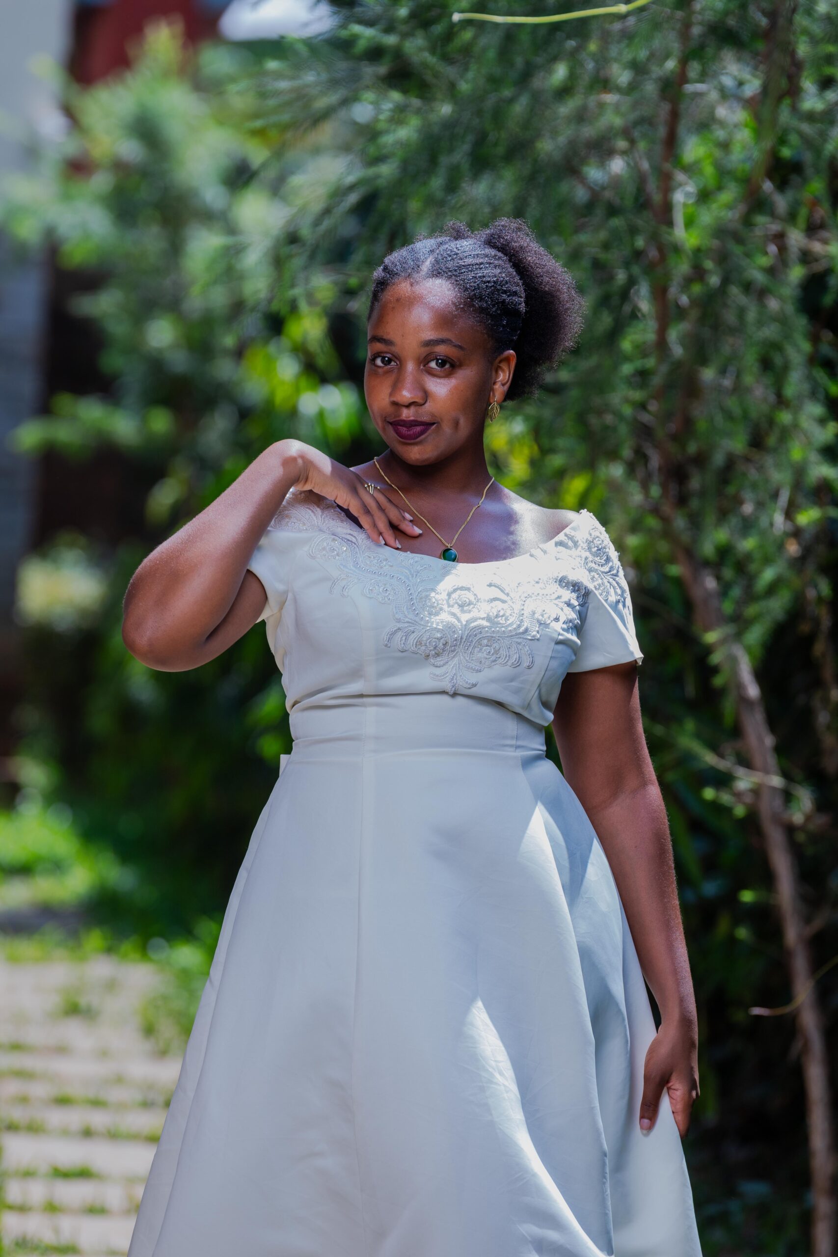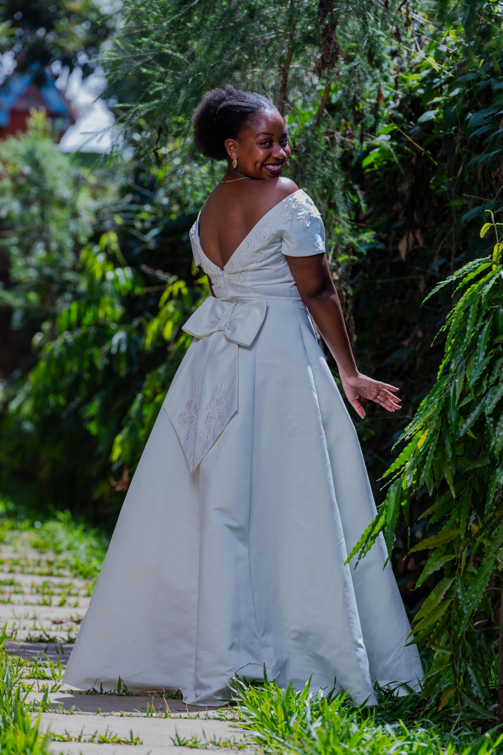 A-line with low back and bow detail at the back.
