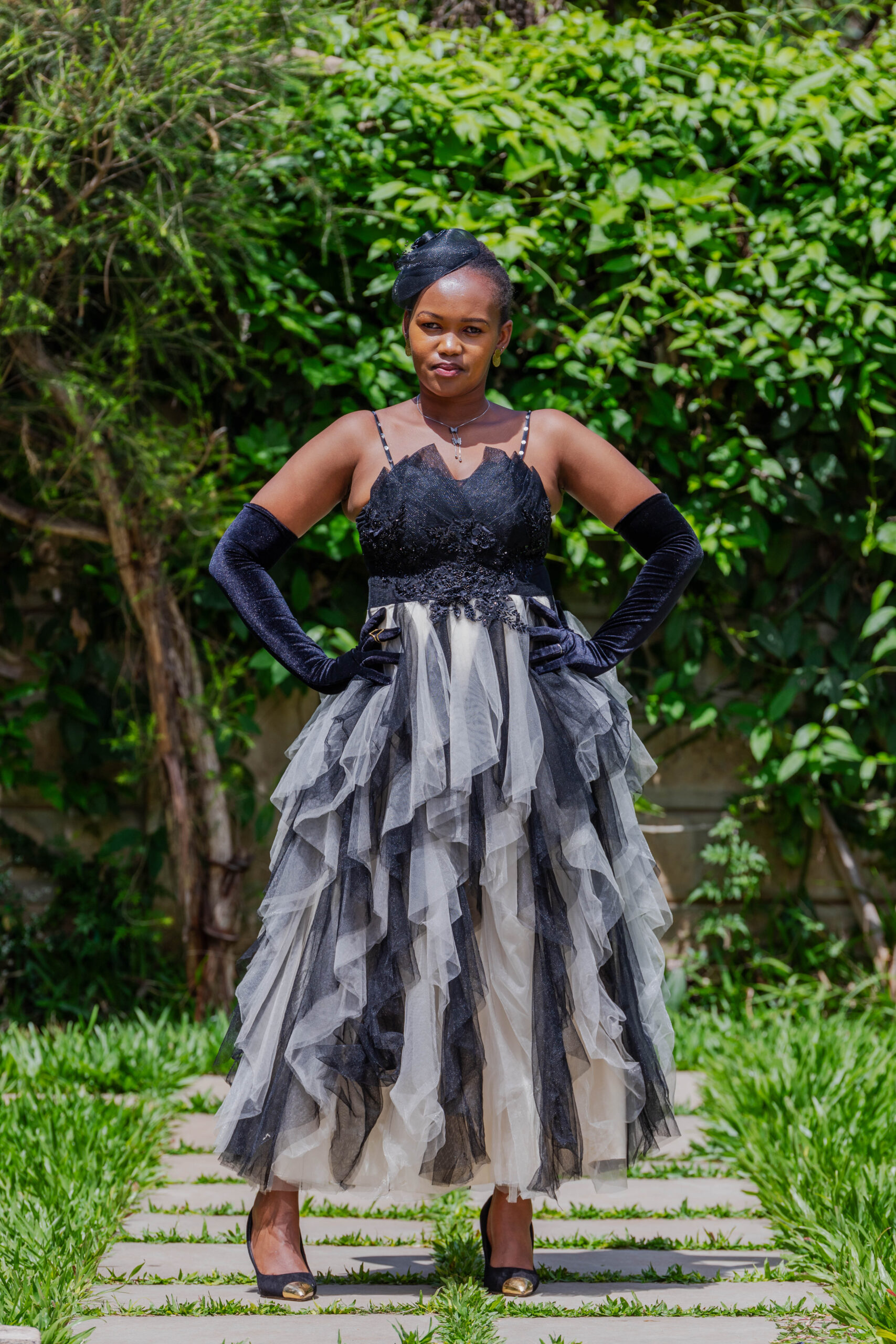 Black and off-white with ruffled bottom